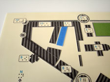Des éléments en relief apportés par des ajouts de texture optimisent la lecture tactile et offrent aux visiteurs plus de repères. Chaque plan est légendé. L’ensemble est relié dans un livret au format A4 que les visiteurs peuvent emporter lors de leur visite.